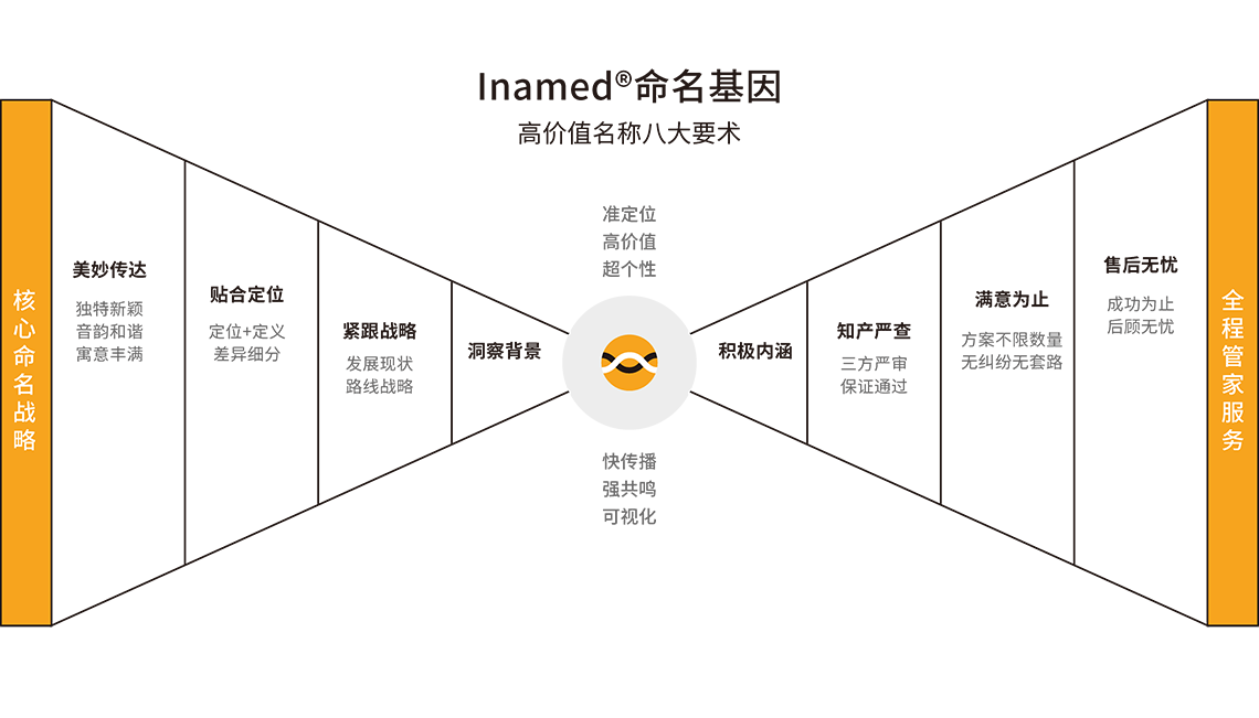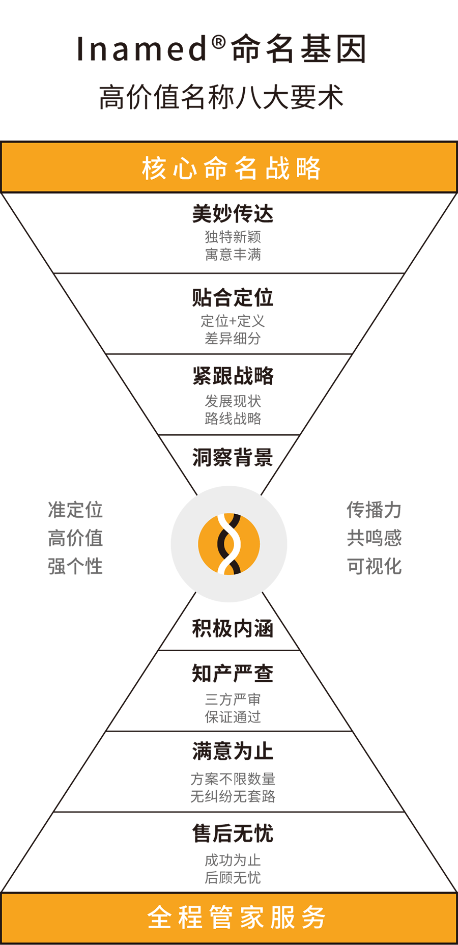 根據目標群體需求特征以及品牌起名定位,通過字義、字音、字性等多種方法,創(chuàng)意命名方案;對名稱進行商標注冊系統(tǒng)篩查等。